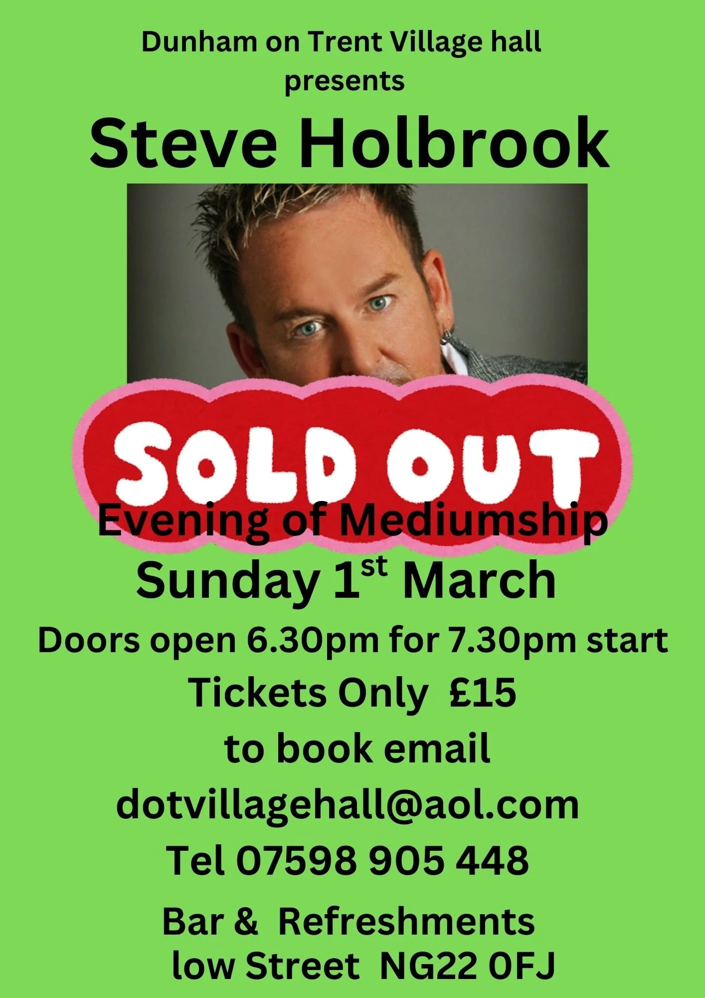 Tickets selling for £15 by contacting 07598 905448 or dotvillagehall@aol.com